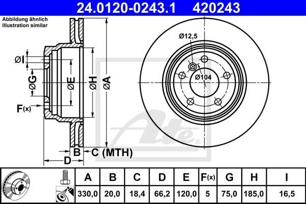 ATE disk ploča BMW 24.0120-0243.1 zadnja, bmw 3 f30 330d 11->, d330/20