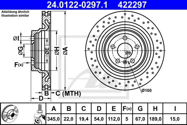 ATE disk ploča MERCEDES BENZ 24.0122-0297.1 zadnja, amg gl-class (x166) gl 350 4 matic 12->, d345/22