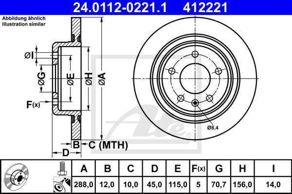 ATE disk ploča OPEL 24.0112-0221.1 zadnja, insignia b 17->, d288/12 16