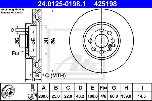 ATE disk ploča OPEL 24.0125-0198.1 prednja, astra h 1.7cdti 05 ->, d280/25