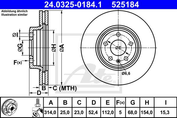 ATE disk ploča VW 24.0325-0184.1 prednja, a-4 1.8,2.0tfsi 07 ->, d314/25 power d