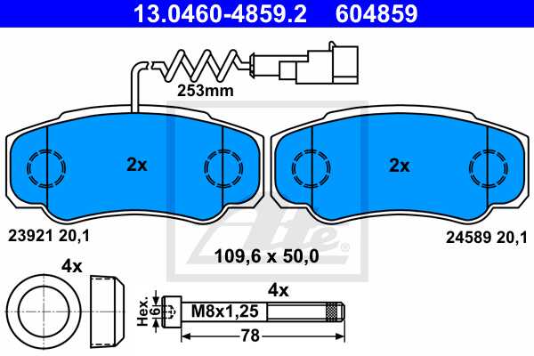 ATE disk pločice NISSAN 13.0460-4859.2 nissan cabstar (f24m, f24w) 28.11 dci, 32.11 dci, 35.11 dci 2.5 06-> 13